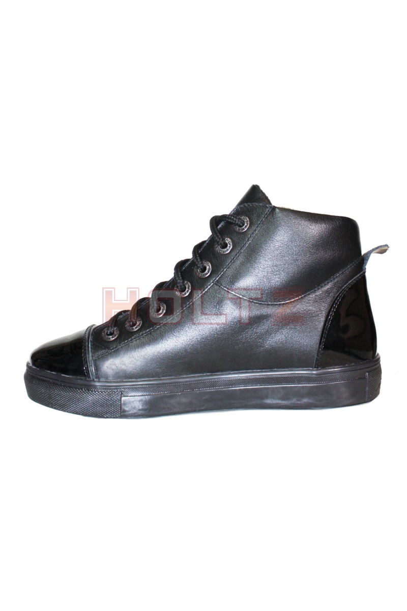 Оригинальные кеды с лаковым носом и пяткой из черной кожи на байковой подкладке. Шнуровка почти на всю длинну. Стойкая к истеранию подошва из ТЭП. Производство Санкт-Петербург.
