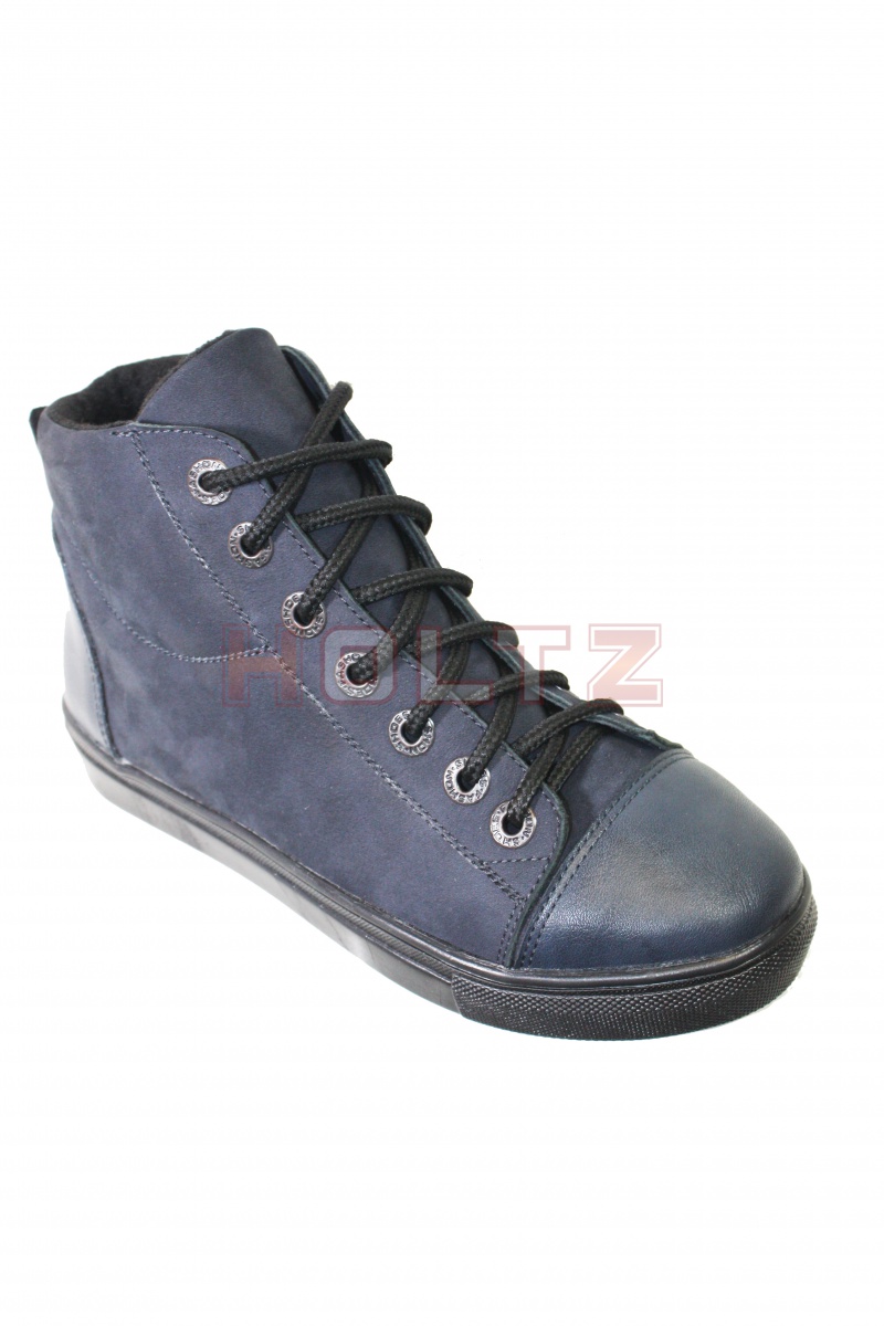 Оригинальные кеды с кожаным носом и пяткой из синего нубука на байковой подкладке. Шнуровка почти на всю длинну. Стойкая к истеранию подошва из ТЭП. Производство Санкт-Петербург.