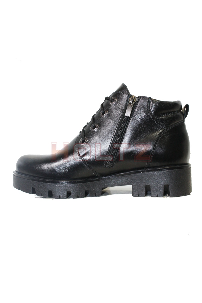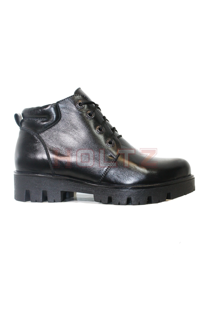 Женские осенние ботинки из черной кожи 70/1 на толстой подошве