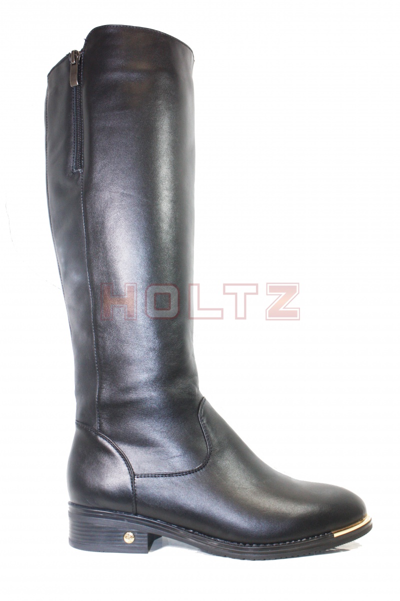 Женские сапоги на осень из черной кожи 130 с золотым носом