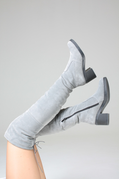 Женские замшевые ботфорты из новой коллекции Melany Light Gray. Натуральная итальянская замша. Высота выше колена 56 см. Подошва из зимнего ТЭП не скользящая и не требующая набоек.