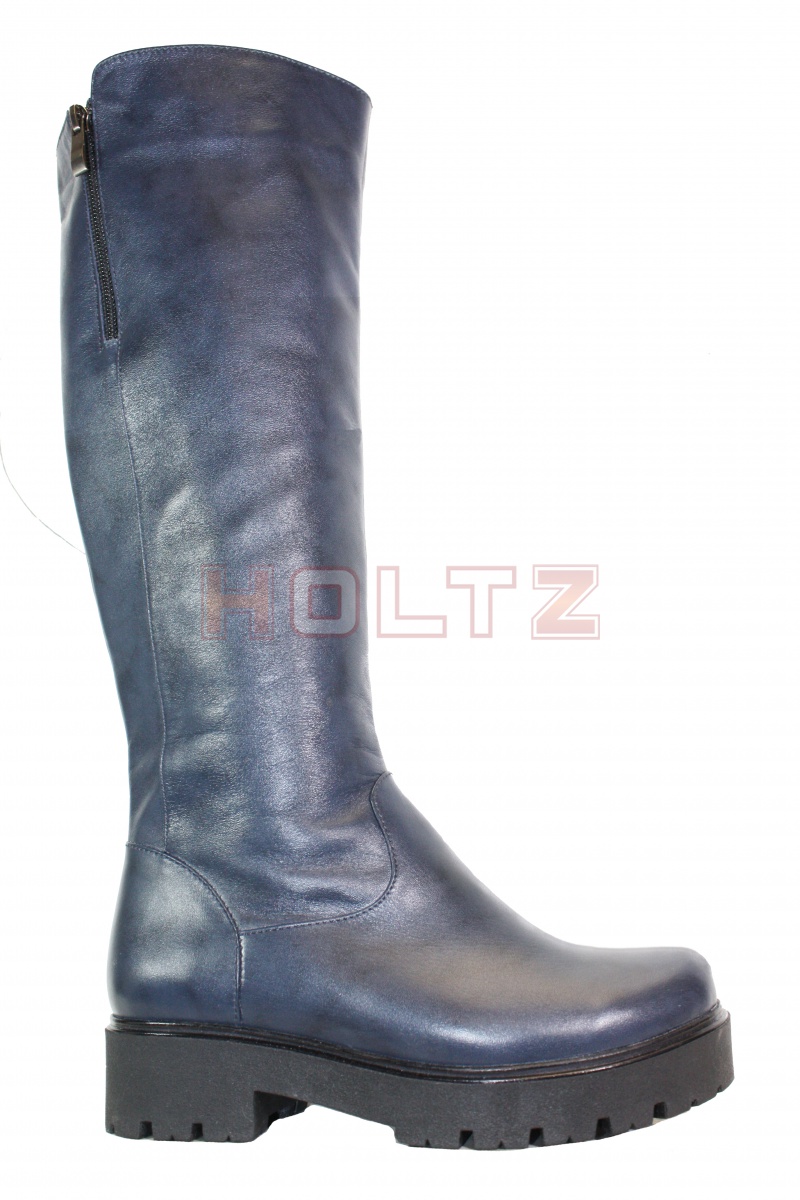 Зимние сапоги из синей гладкой кожи на платформе 130ш