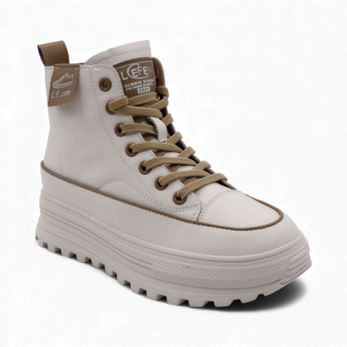 Кроссовки высокие из натуральной кожи MS-S196 бежевые
