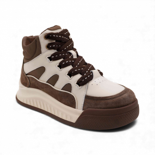 Кроссовки высокие из натуральной кожи MS-S294 коричневые
