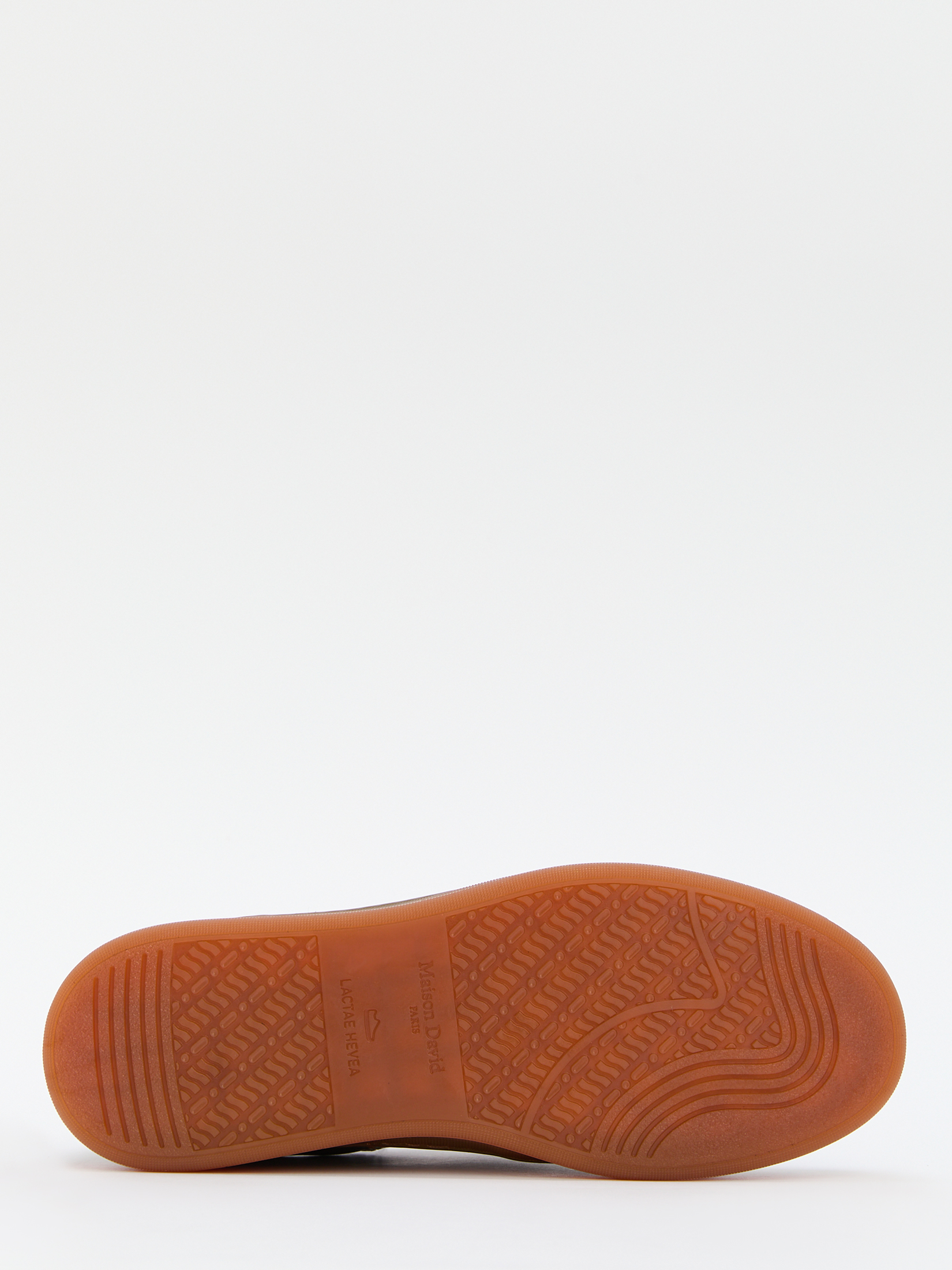 ​Каучуковые подошвы не промокают, их можно носить в любую погоду. Каучук переносит морозы лучше резиновых подошв: он меньше грубеет и не теряет эластичности. Обувь с каучуковой подошвой – хороший выбор, если вы много времени проводите на ногах. Характерная липкость материала делает подошвы нескользкими, вы будете чувствовать себя уверенно на разных покрытиях (плитке, ламинате, асфальте). Подошву на основе натурального каучука можно узнать по маркировке «Lactae Hevea» или «Latex 100% naturel».