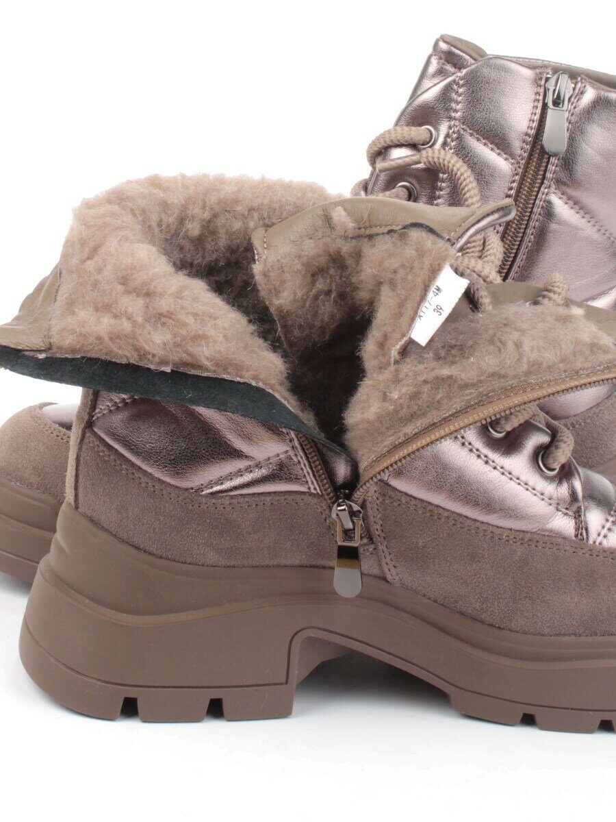 04-A117-4M BROWN Ботинки зимние женские (натуральная замша, натуральная кожа, натуральная шерсть)