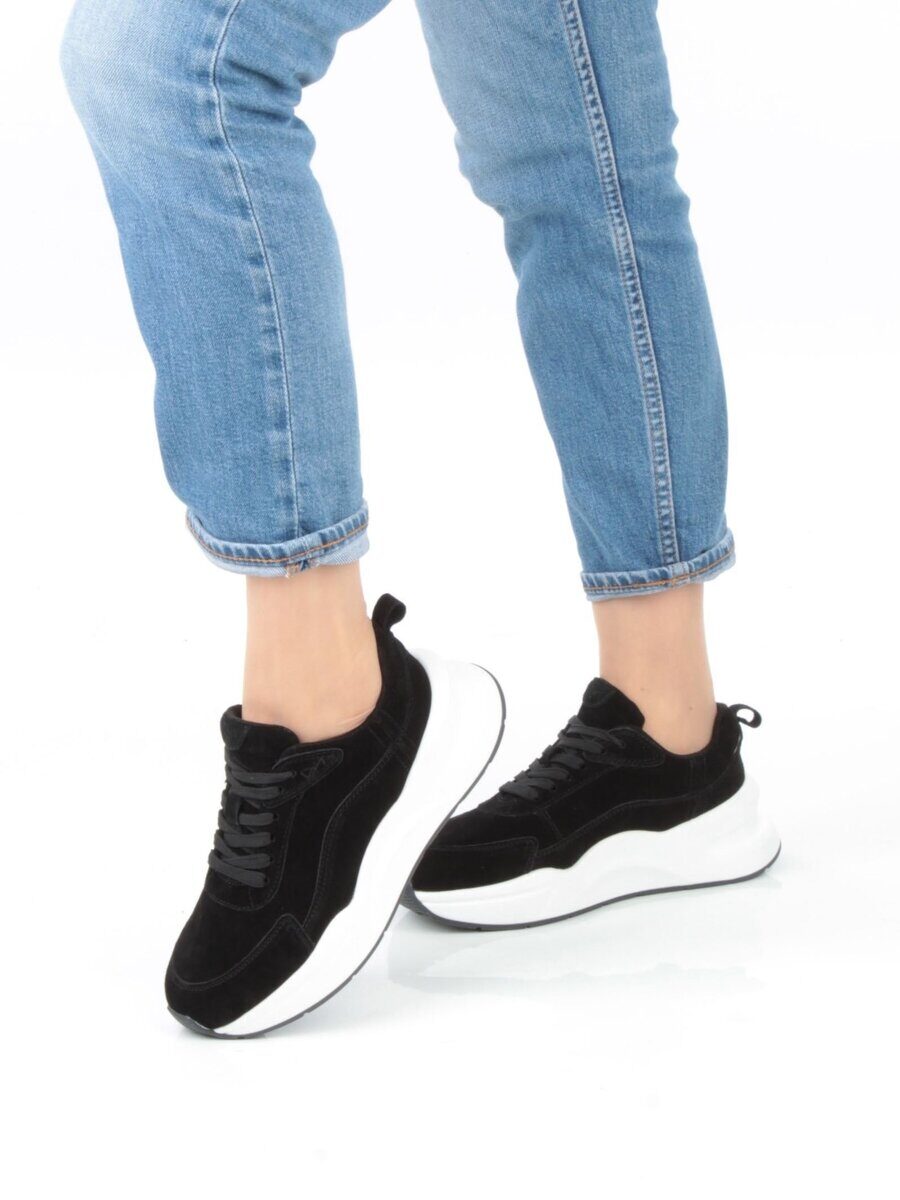 05-A504-1 BLACK Кроссовки женские (натуральная замша)