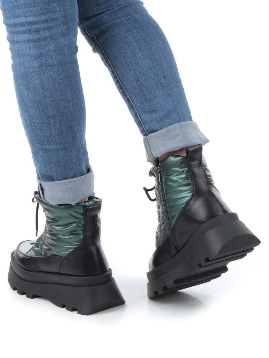 02-FAS16-3Z GREEN/BLACK Дутики женские (искусственная кожа, плащевая ткань, шерсть)