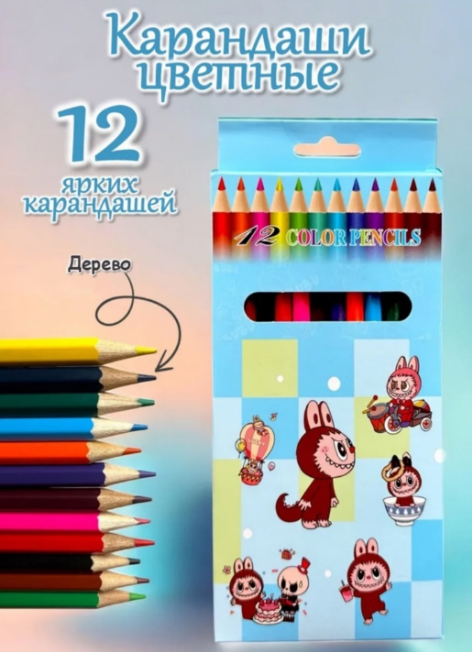 Набор цветных карандашей 12 цветов ЛАБУБУ