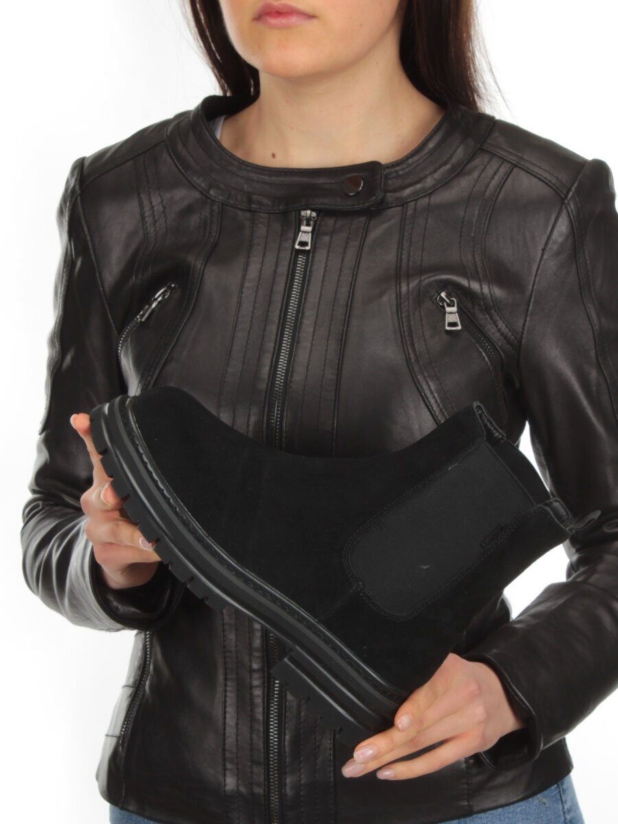 01-155-1HR BLACK Ботинки Челси демисезонные женские (натуральная замша, байка)