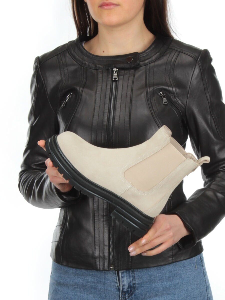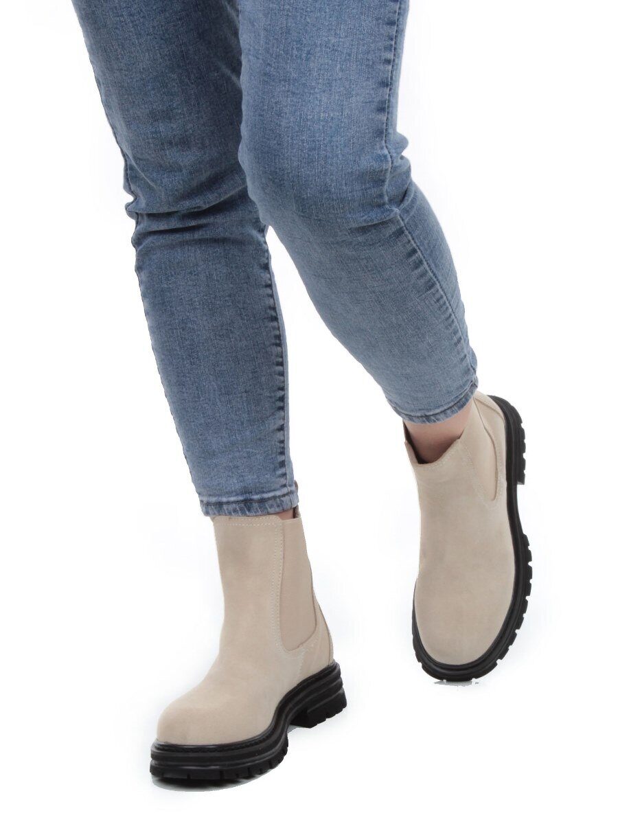 01-155-1MR BEIGE Ботинки Челси демисезонные женские (натуральная замша, байка)