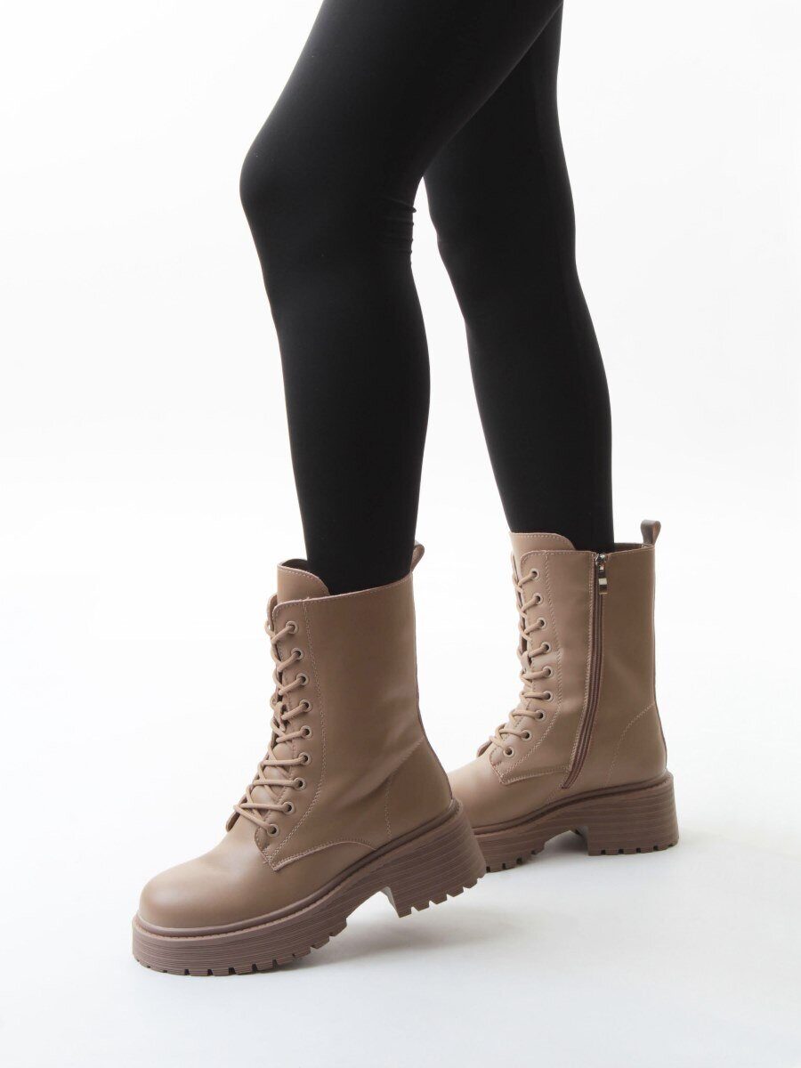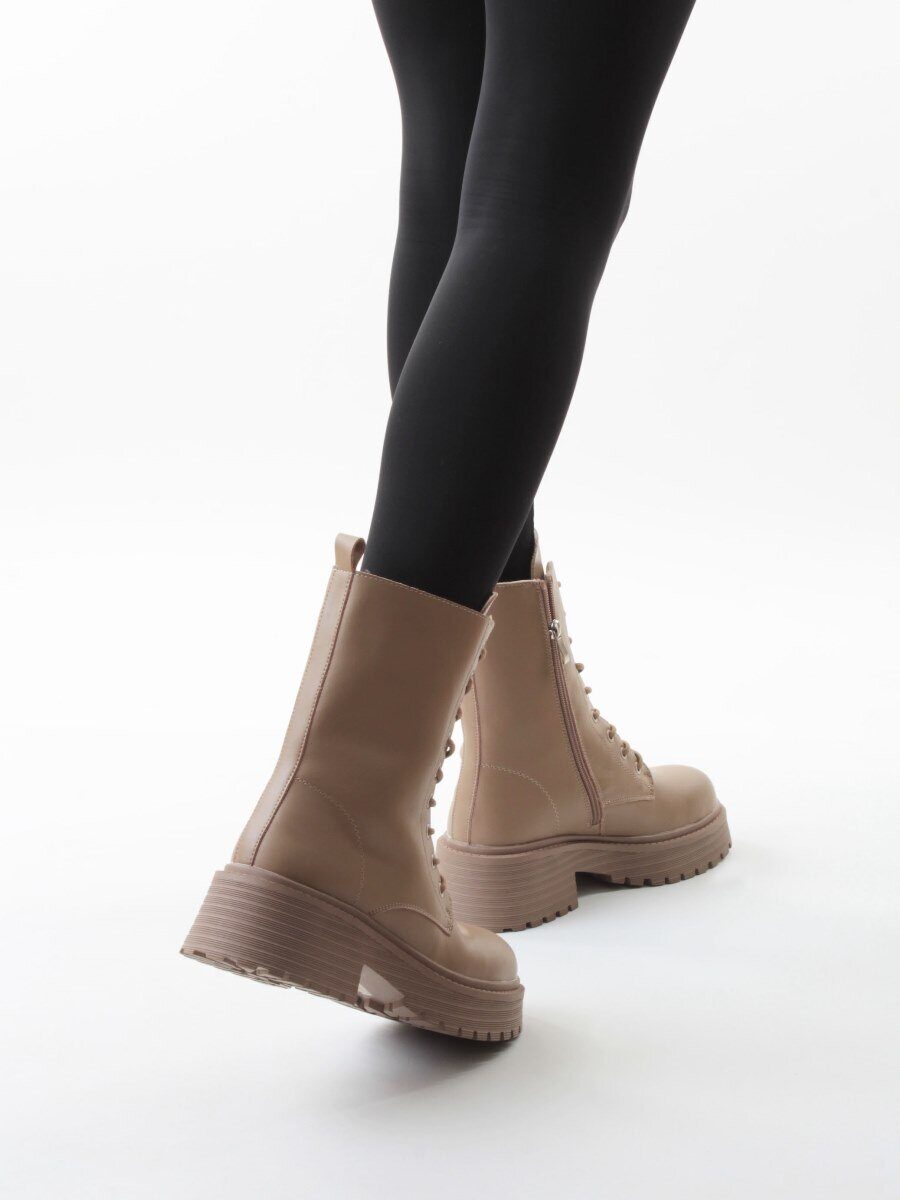 04-207-3424A-5608 DK. BEIGE Ботинки зимние женские (натуральная кожа, 100% шерсть)