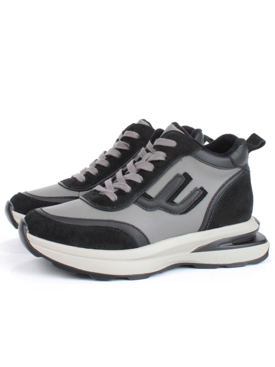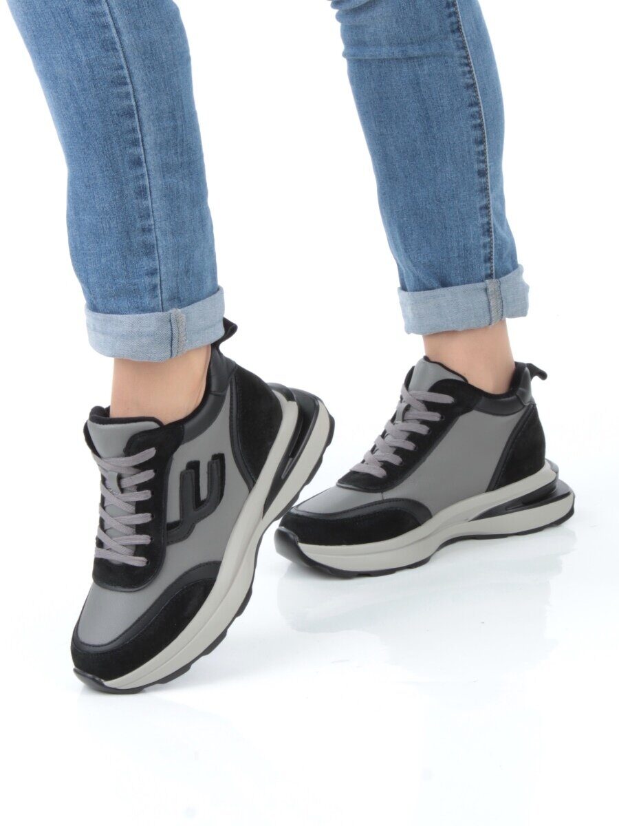 05-804-1B BLACK GRAY Кроссовки женские демисезонные (натуральная кожа , натуральная замша, натуральная байка)