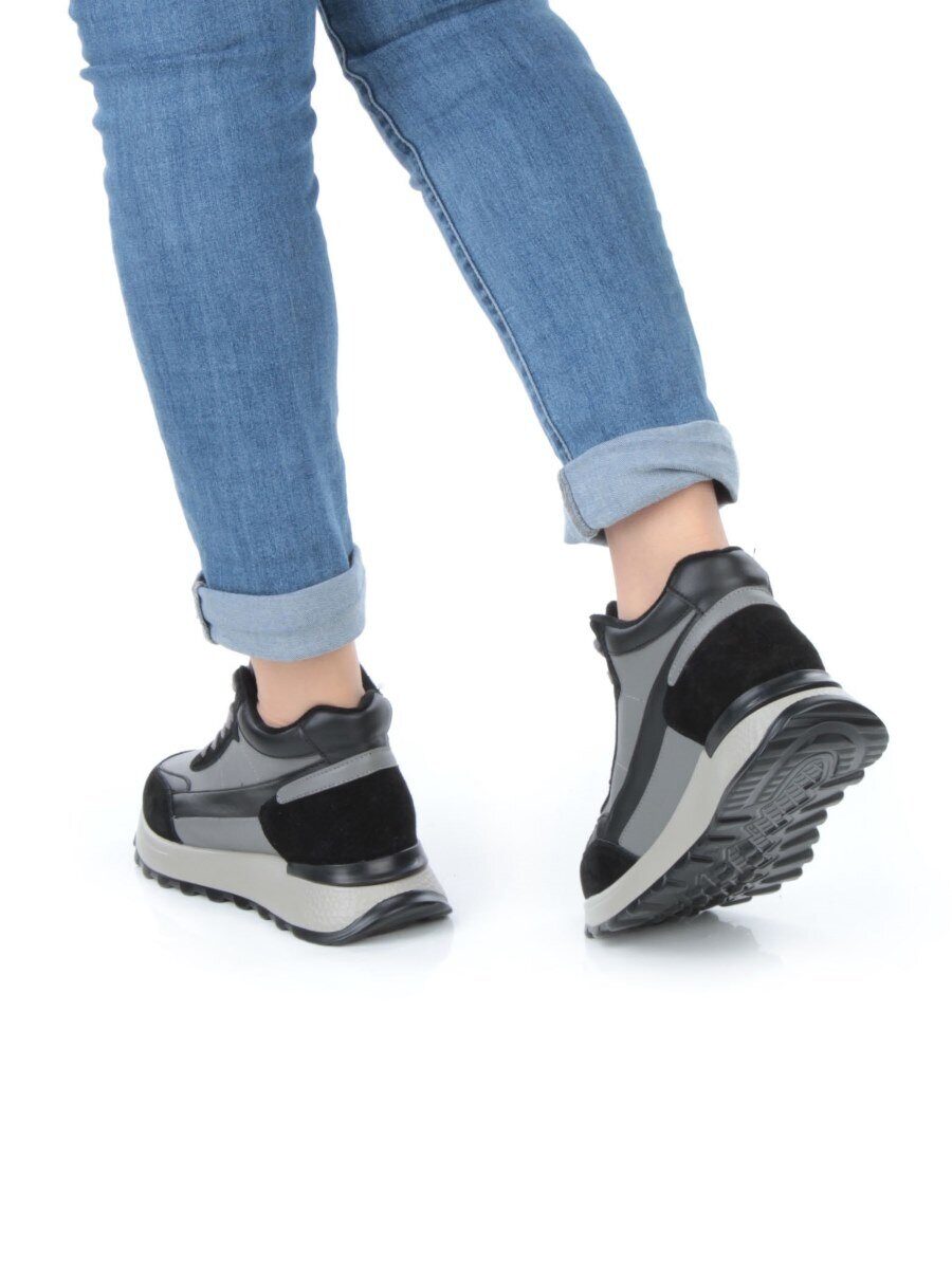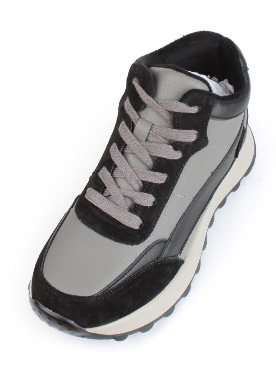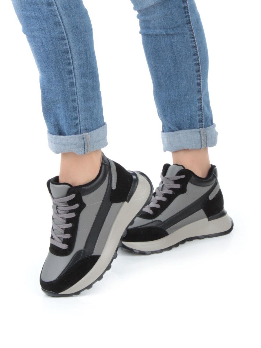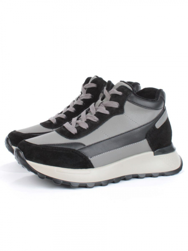 05-810-1 BLACK GRAY Кроссовки женские демисезонные (натуральная кожа , натуральная замша, натуральная байка)