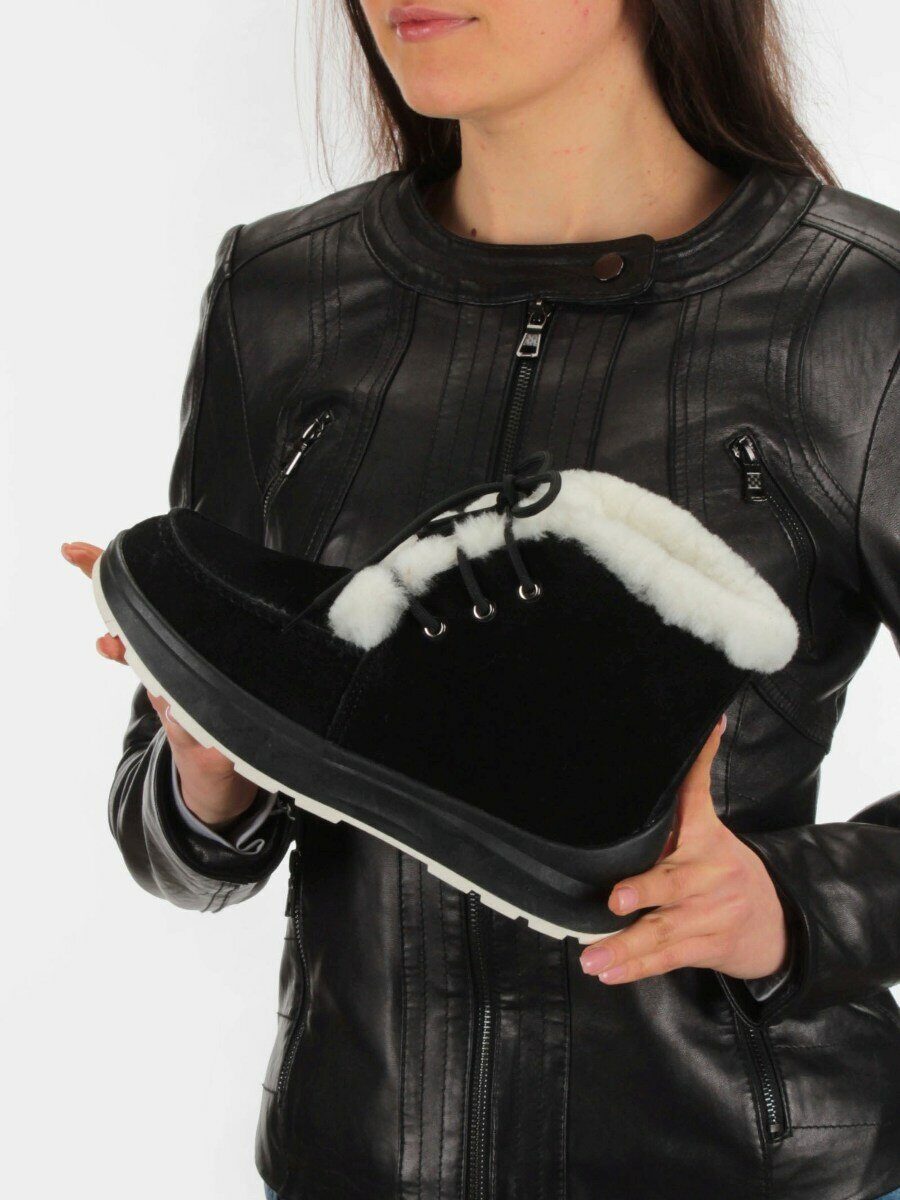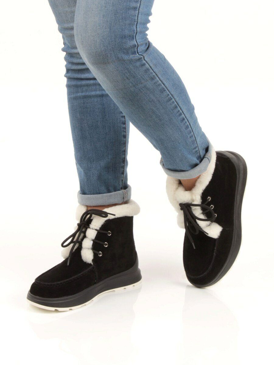 11-M1 BLACK Ботинки зимние женские (натуральная замша, нат. мех и шерсть)