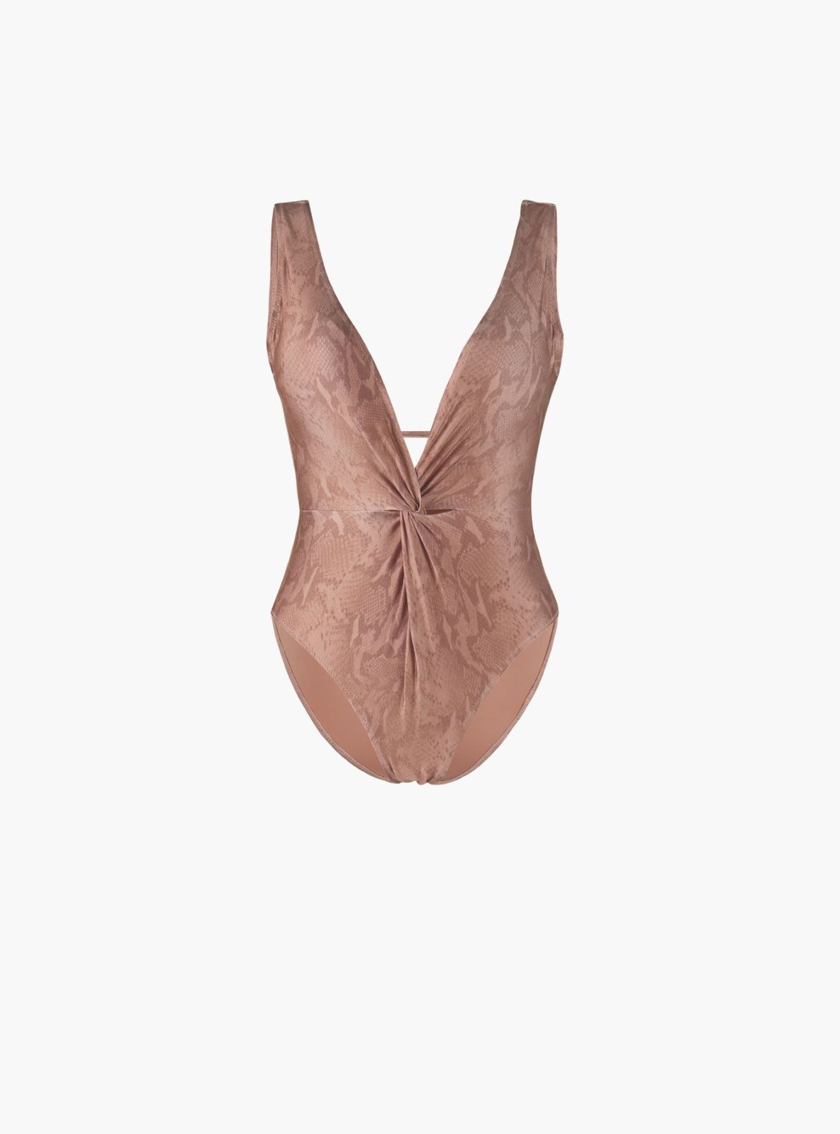 Женский слитный купальник с V-образным вырезом  — украсит фигуру и подчеркнет ее достоинства. В области груди вставлены поролоновые чашки без Push-Up. Драпировка на талии помогает корректировать фигуру. Благодаря внутренней подкладке в купальнике можно чувствовать себя уверенно.