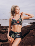 Яркий раздельный купальник с драпировкой — украсит фигуру и подчеркнет ее достоинства. Благодаря внутренней подкладке в купальнике можно чувствовать себя уверенно. Лямки купальника съемные, можно носить как топ-бандо без бретелек. Трусы бразильано с драпировкой корректируют фигуру. Бюстгальтер на косточках с формованной чашкой поддерживает грудь. Застежка на надежных металлических крючках: легко надевать и снимать изделие.