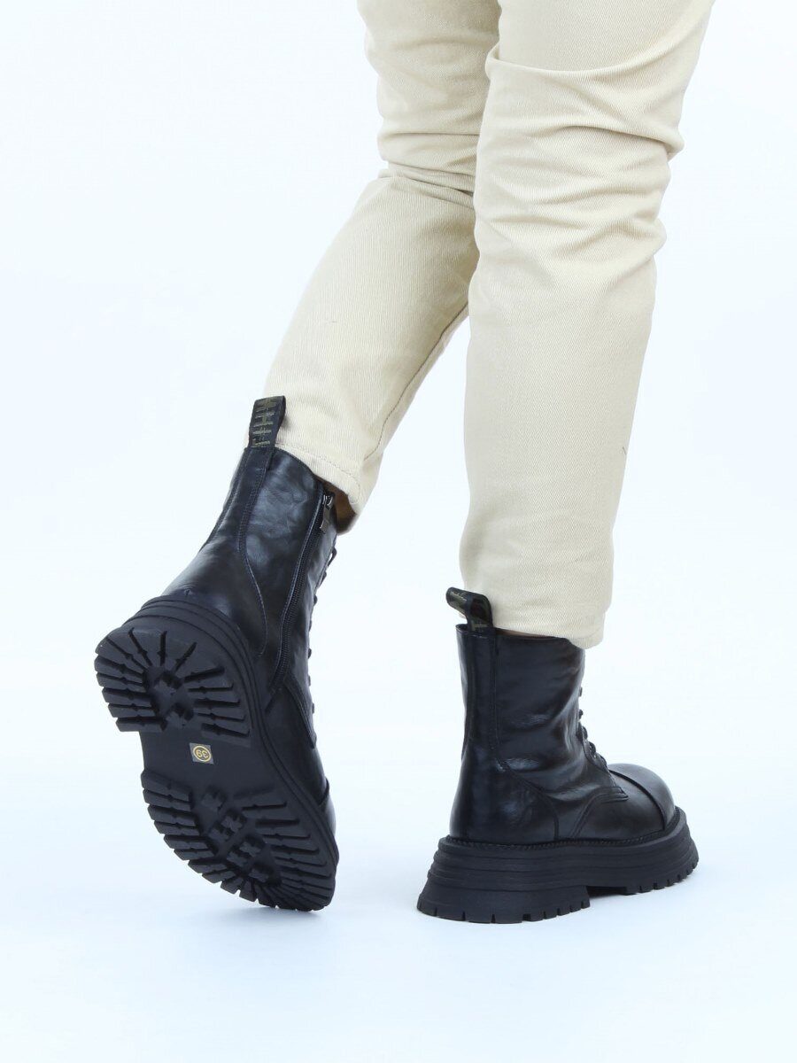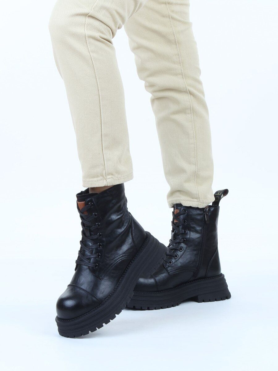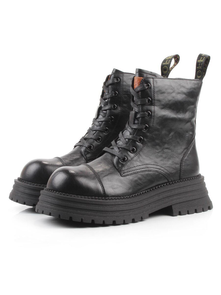 01-A13-1 BLACK Ботинки демисезонные женские (натуральная кожа)