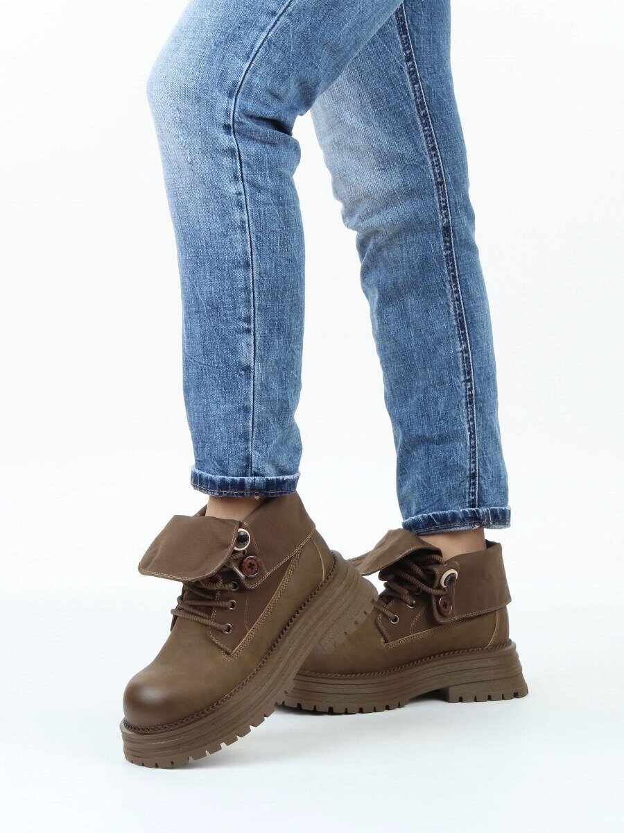 01-A14-3 KHAKI Ботинки демисезонные женские (натуральная кожа)