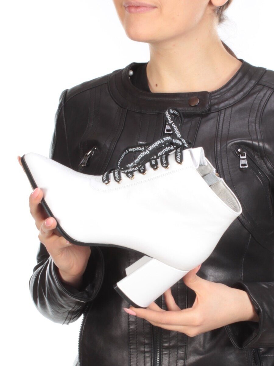 01-B087B-360D WHITE Ботинки демисезонные женские (натуральная кожа, байка)