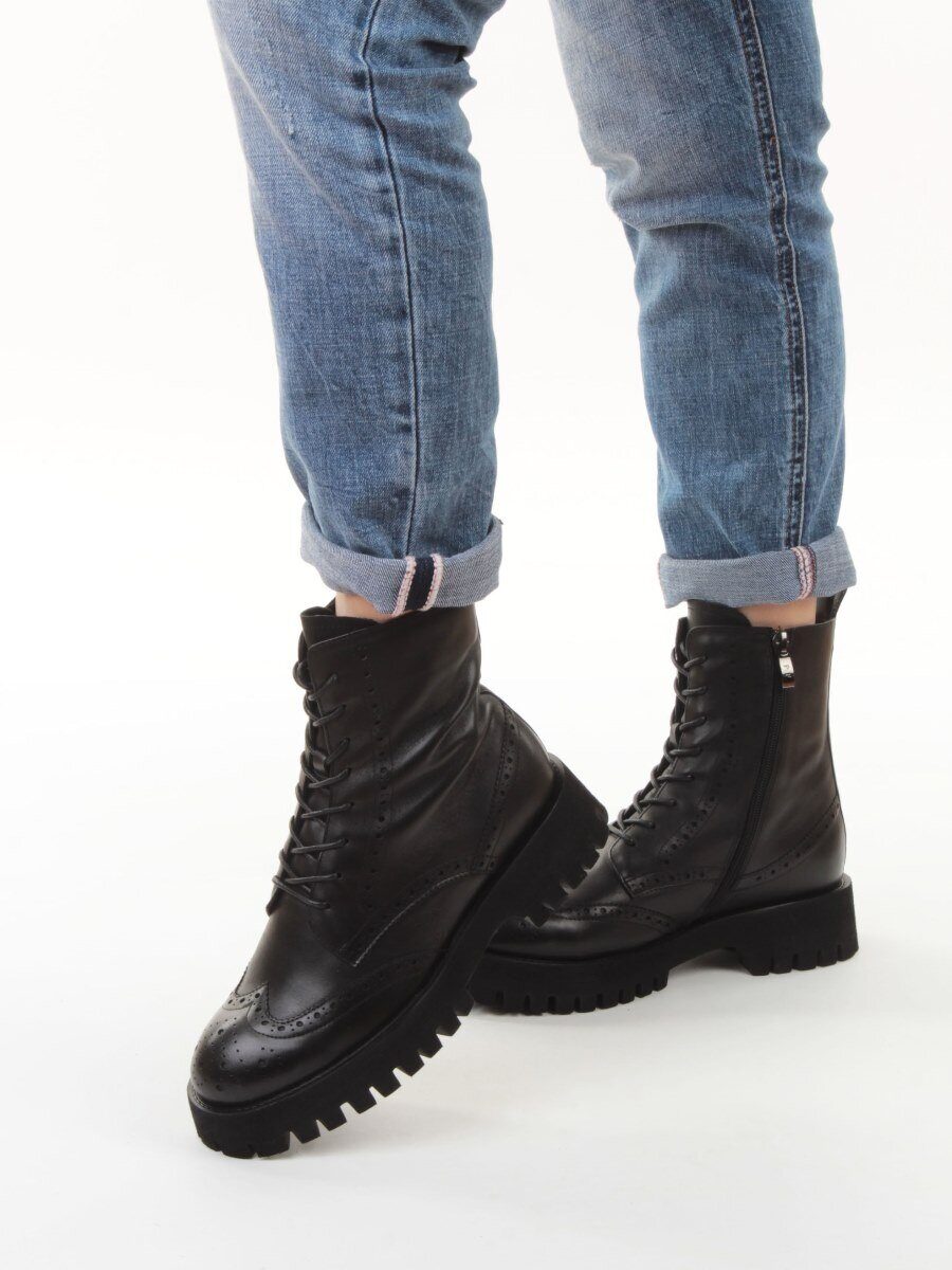 01-B2103B-9A BLACK Ботинки демисезонные женские (натуральная кожа, байка)