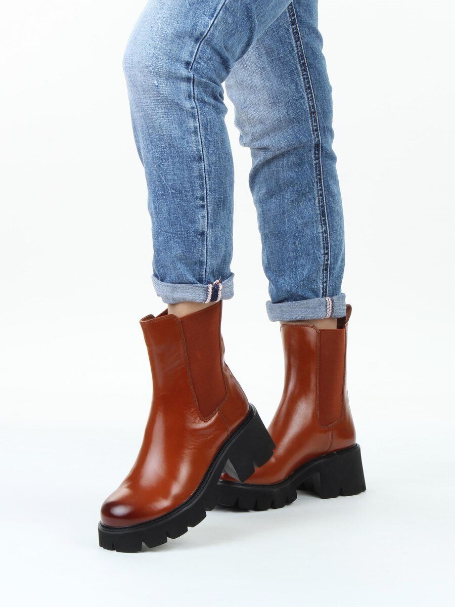 01-BE22B-4C BROWN Ботинки демисезонные женские (натуральная кожа, байка)