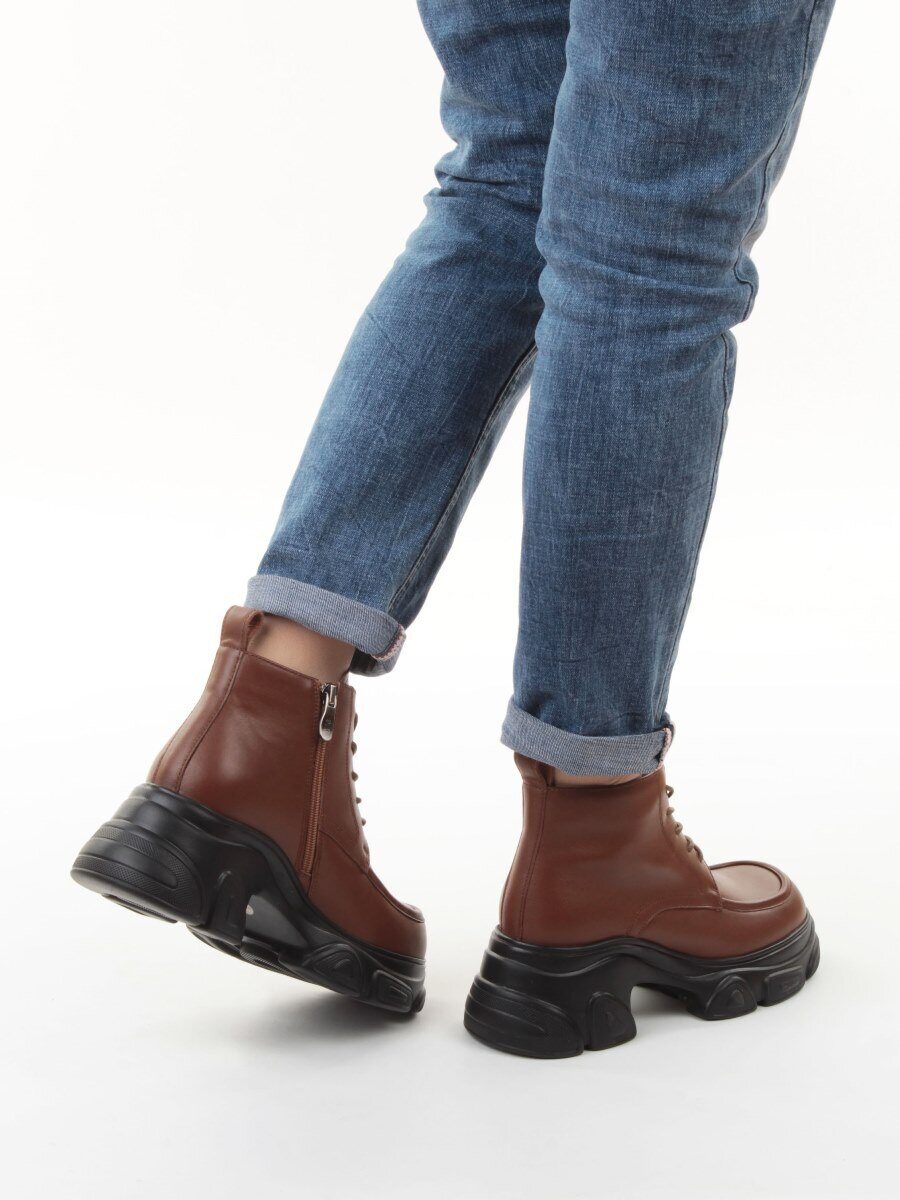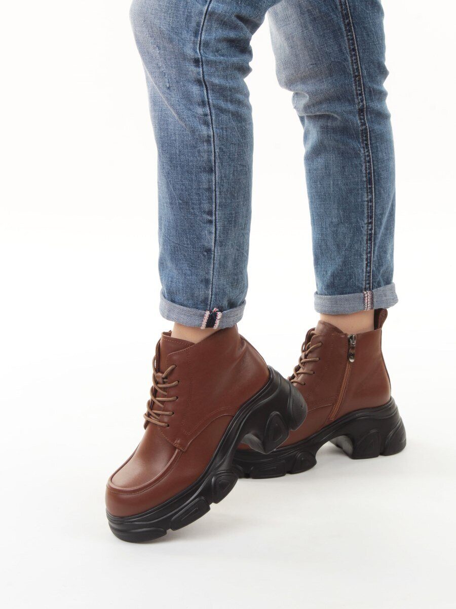 01-H23B-32MB BROWN Ботинки демисезонные женские (натуральная кожа, байка)