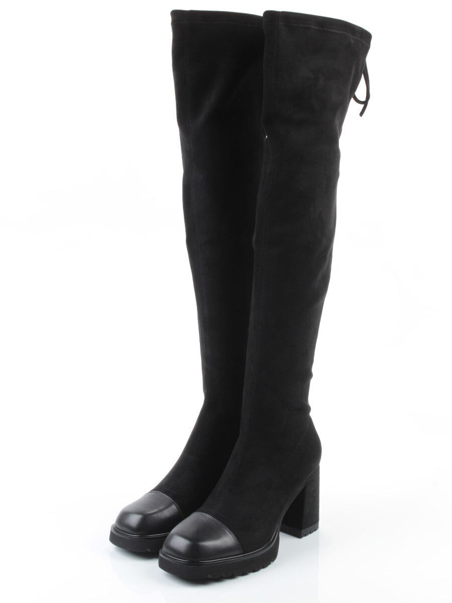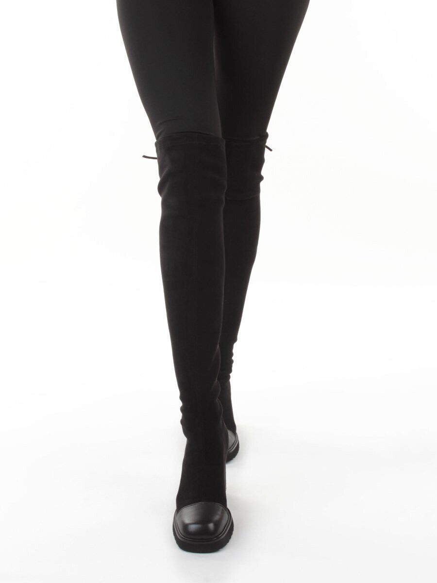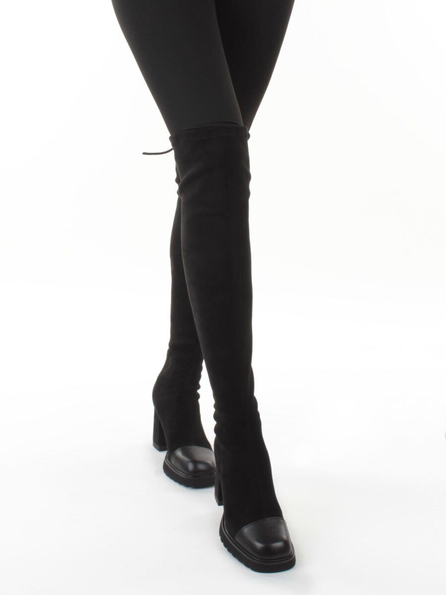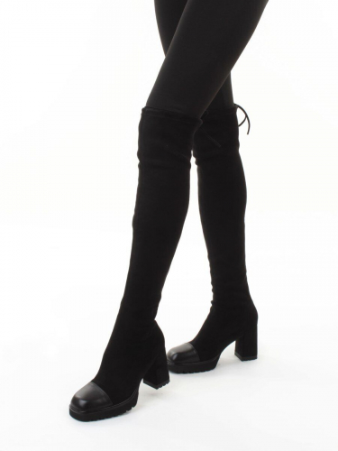 02-H8B-11A BLACK Сапоги "Ботфорты" демисезонные женские (искусственная замша, натуральная кожа)