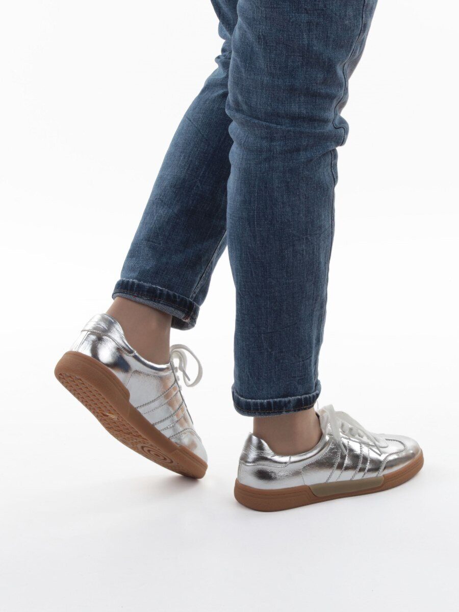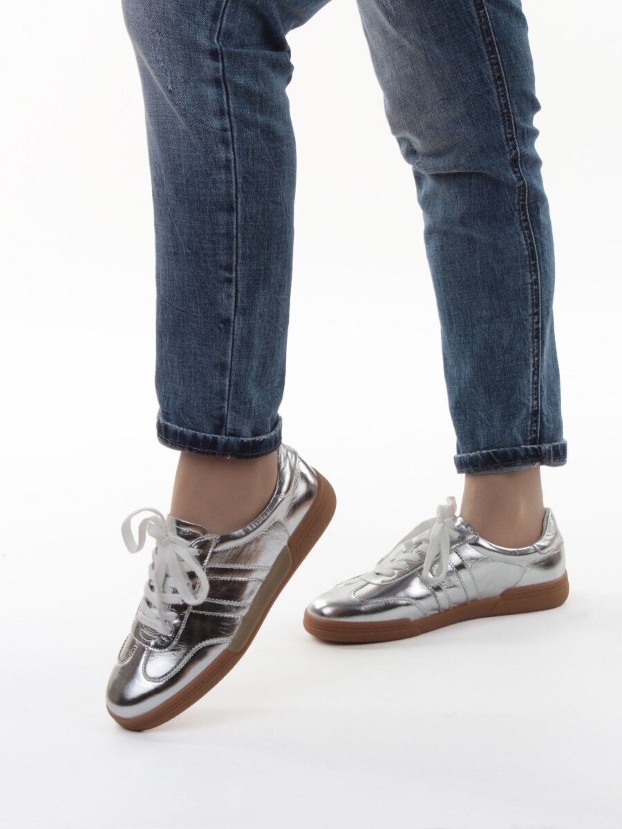 03-B6C-7C GREY/SILVER Кеды женские (натуральная кожа)