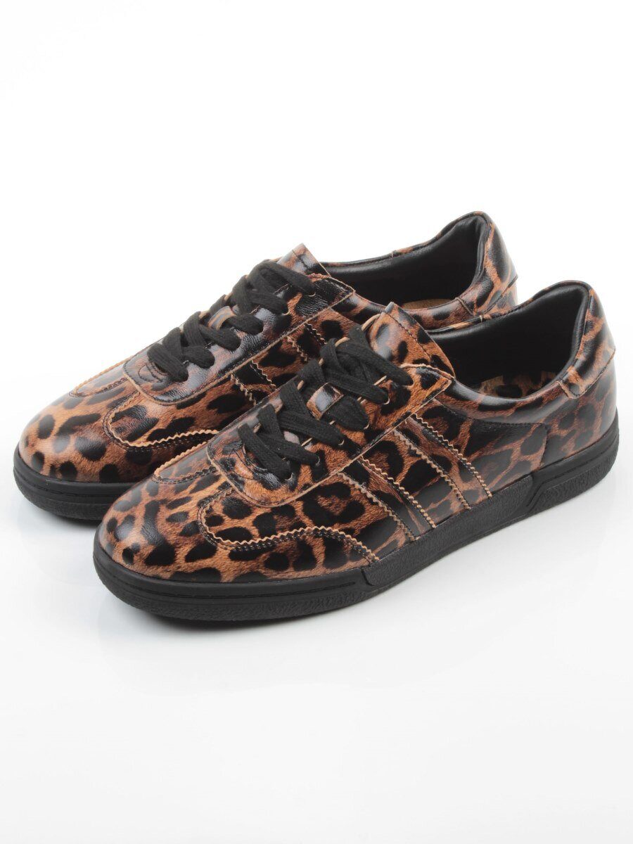 03-B6C-7PC BROWN/LEOPARD Кеды женские (натуральная кожа)
