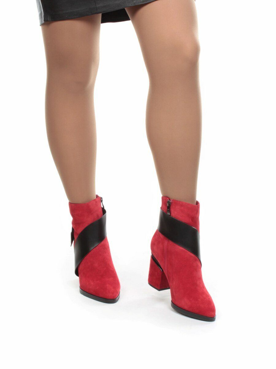 Красный Ботинки зимние женские (натуральная замша, натуральный мех)
