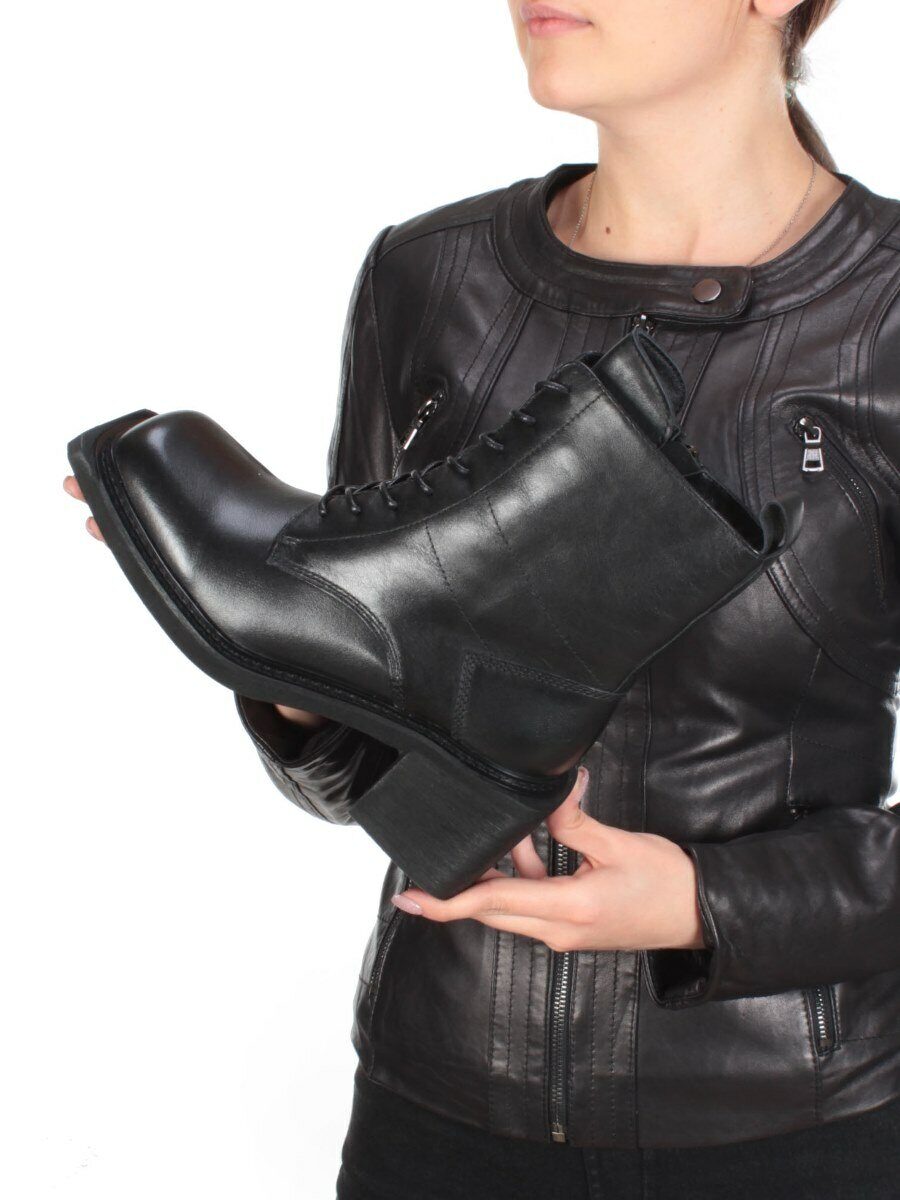 04-E21W-2A BLACK Ботинки зимние женские (натуральная кожа, натуральный мех)
