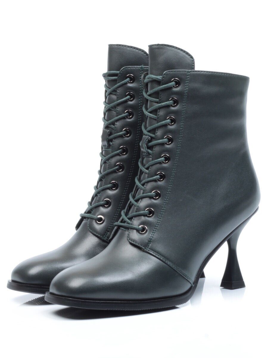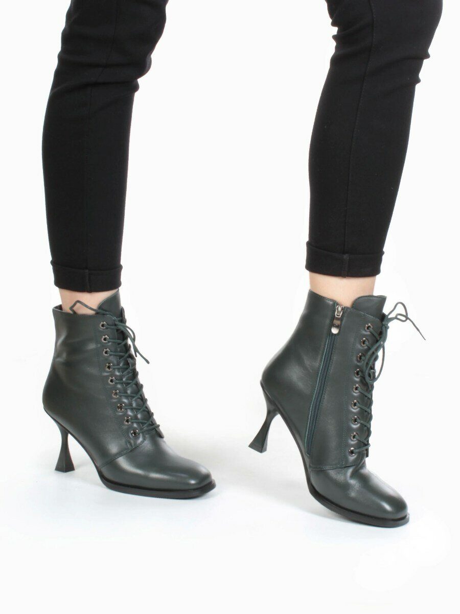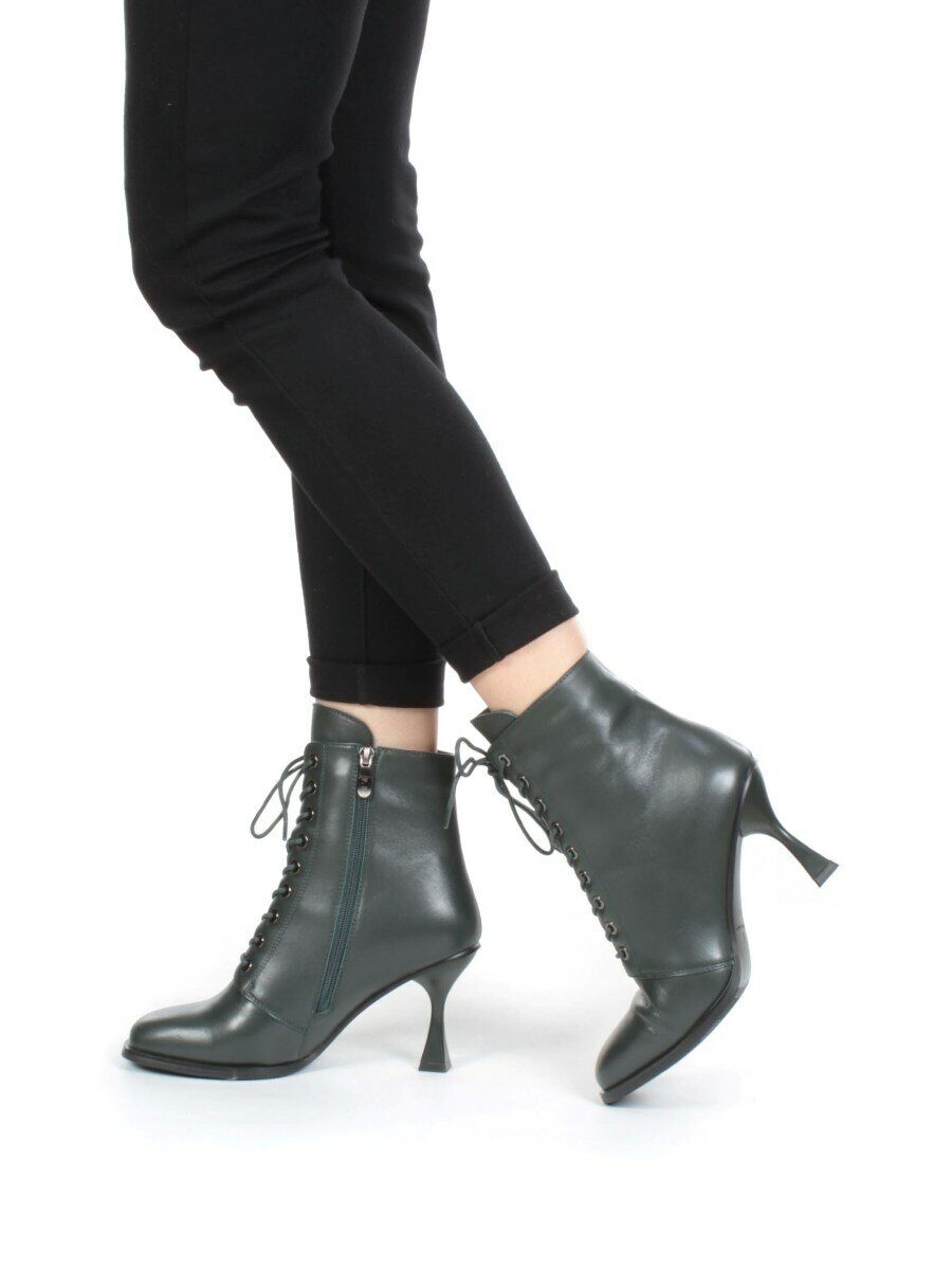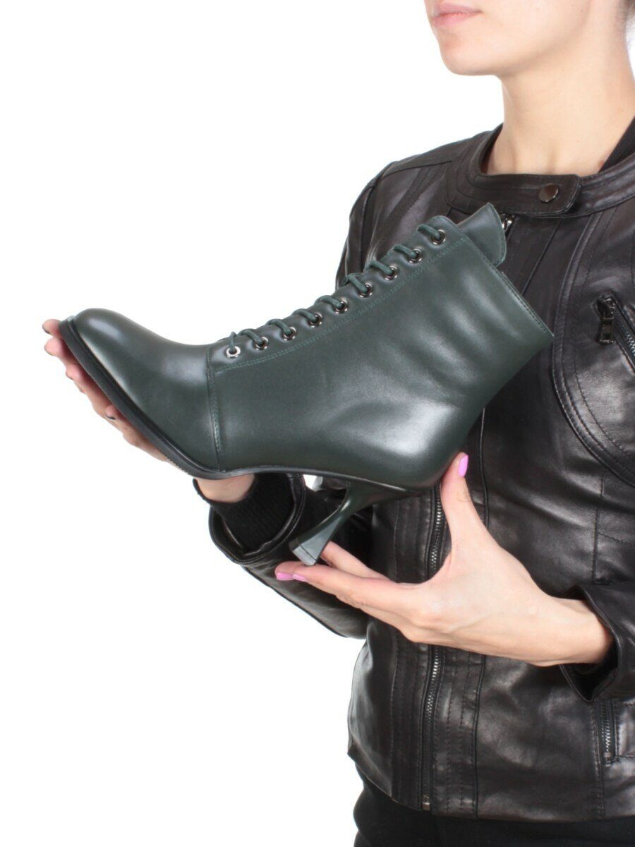 04-E29W-15AF GREEN Ботильоны зимние женские (натуральная кожа, натуральный мех)