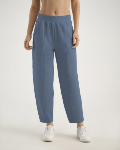 ХЛОПОК 50%; ПОЛИЭСТЕР 50%Брюки-бананы из интерсофта свободного кроя с боковыми карманами/ зауженные к книзу. Широкий эластичный пояс со шнуром.