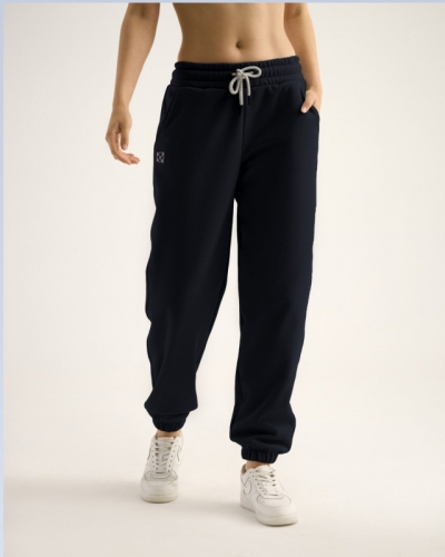 ХЛОПОК 50%; ПОЛИЭСТЕР 50%Джоггеры свободного кроя с боковыми карманами/ собранные внизу. Широкий эластичный пояс со шнуром.