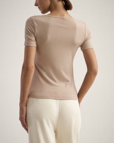 ВИСКОЗА 94% ЭЛАСТАН 6%Укороченная футболка/ облегающего силуэта. Втачной рукав. Горловина окантована.