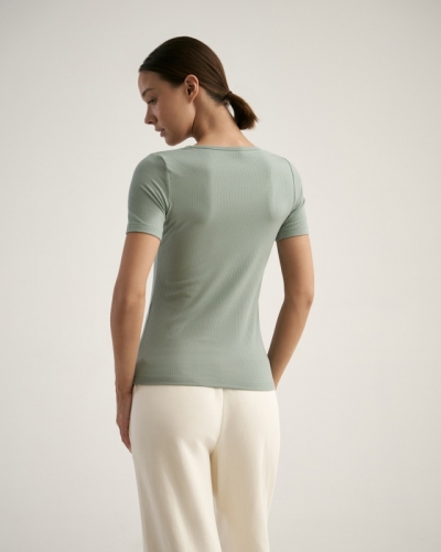 ВИСКОЗА 94% ЭЛАСТАН 6%Укороченная футболка/ облегающего силуэта. Втачной рукав. Горловина окантована.