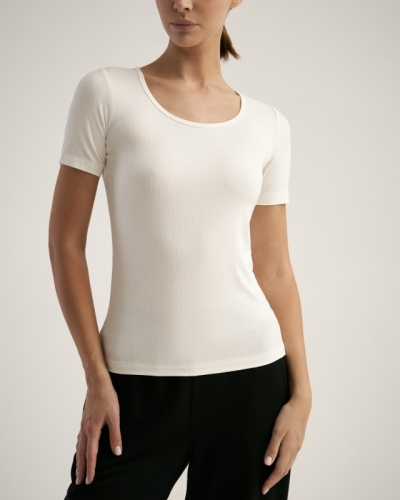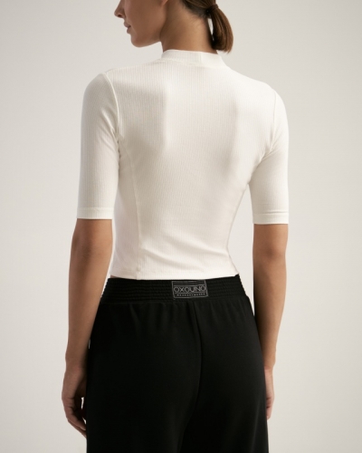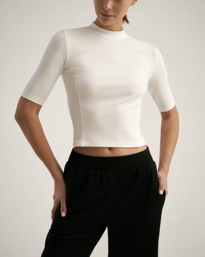 ВИСКОЗА 94% ЭЛАСТАН 6%Укороченная футболка/ облегающего силуэта. Притачная стойка.