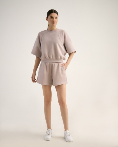 ХЛОПОК 87%; ПОЛИЭСТЕР 13%Футболка женская. Подрезные рельефные линии пройм по переду и спинке. Детали рукава из двух частей. Горловина и пояс из рибаны.