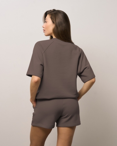 ХЛОПОК 87%; ПОЛИЭСТЕР 13%Футболка с широким рукавом.Низ с эластичным шнуром и фиксатором