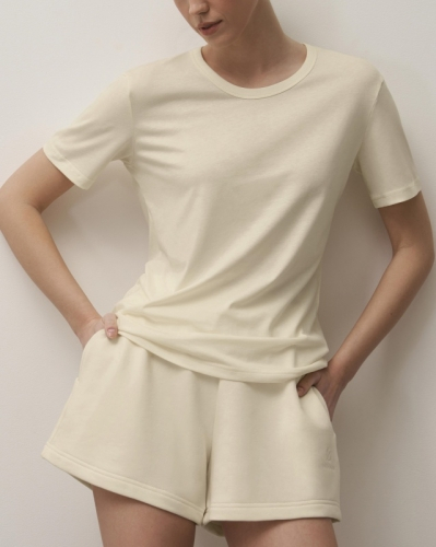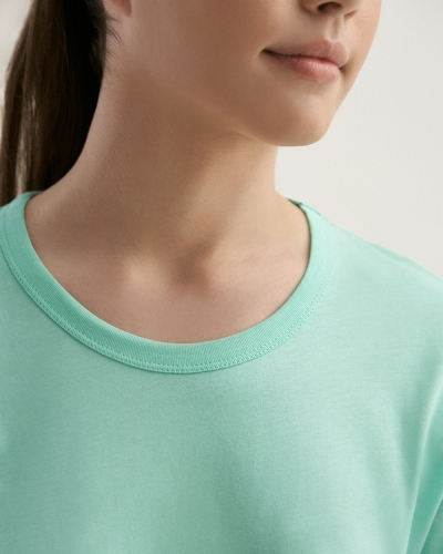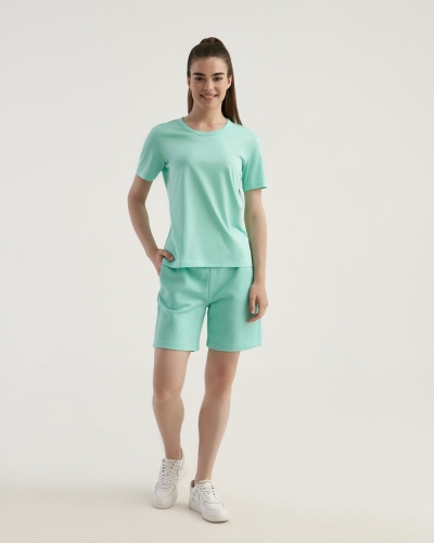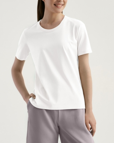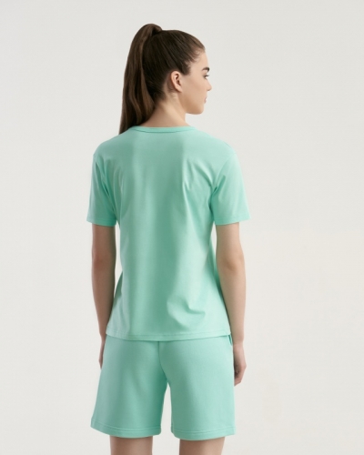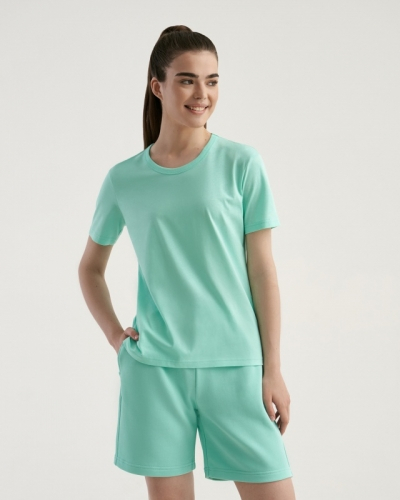 ХЛОПОК 100%Женская футболка полуприлегающего силуэта. Горловина окантована.