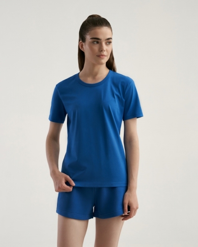 ХЛОПОК 100%Женская футболка полуприлегающего силуэта. Горловина окантована.