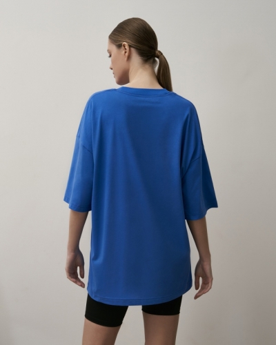 ХЛОПОК 100%Футболка свободного силуэта. Спущенное плечо. Горловина из двух деталей/ из рибаны. Декор: шелкотрафаретная печать.