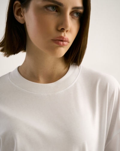 ХЛОПОК 100%Футболка свободного силуэта. Спущенное плечо. Горловина из двух деталей/ из рибаны.