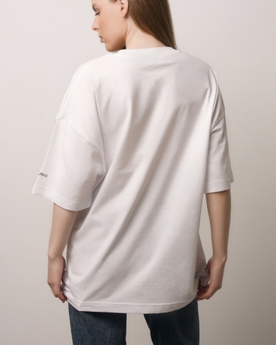 ХЛОПОК 100%Футболка свободного силуэта. Спущенное плечо. Горловина из двух деталей/ из рибаны.