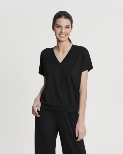 ВИСКОЗА 92%; ЭЛАСТАН 8%Футболка V-neck с цельнокроенным рукавом. Притачной пояс по низу футболки из основной ткани.