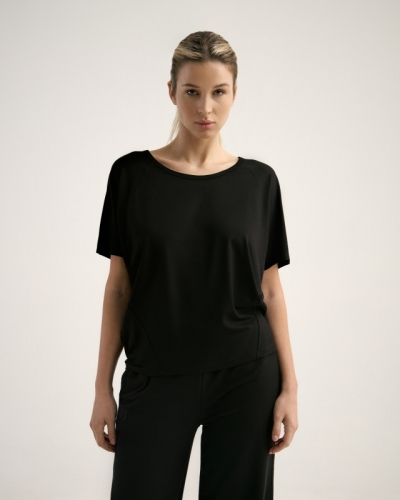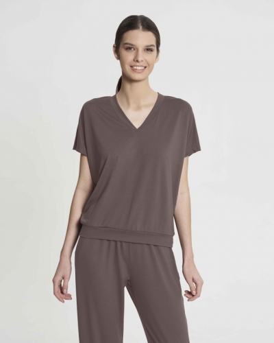 ВИСКОЗА 92%; ЭЛАСТАН 8%Футболка V-neck с цельнокроенным рукавом. Притачной пояс по низу футболки из основной ткани.