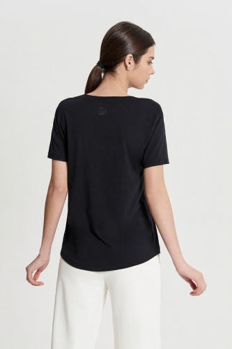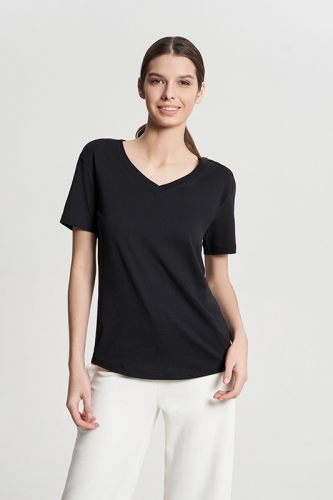 БАМБУК 50%; ХЛОПОК 50%Футболка V-neck/ полуприлегающего силуэта/ фигурный низ.