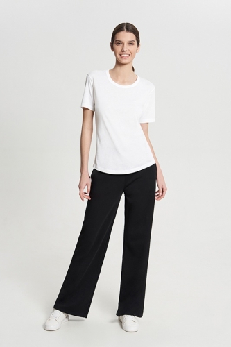 БАМБУК 50%; ХЛОПОК 50%Женская футболка полуприлегающего силуэта с фигурным низом. Горловина окантована.