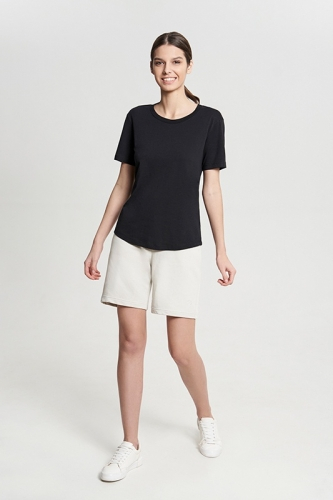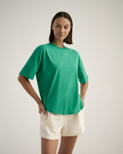 БАМБУК 50%; ХЛОПОК 50%Женская футболка полуприлегающего силуэта с фигурным низом. Горловина окантована.